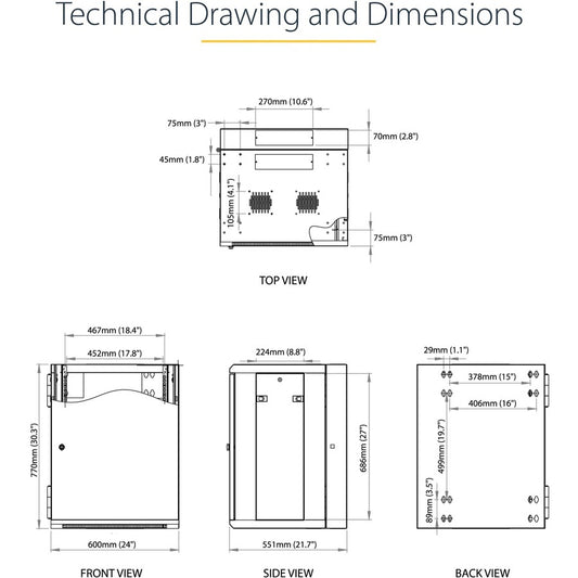 StarTech.com 15U 19" Wall Mount Network Cabinet - 16" Deep Hinged Locking Flexible IT Data Equipment Rack Vented Switch Enclosure w/Shelf RK1520WALHM