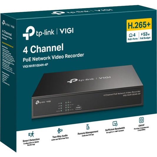 TP-Link VIGI 4 Channel PoE+ Network Video Recorder - 10 TB HDD VIGI NVR1004H-4P