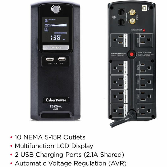 Systèmes d'onduleurs CyberPower CP1500AVRLCD LCD intelligent - Capacité : 1500 VA / 900 W CP1500AVRLCD