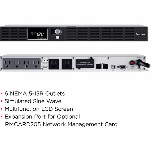 Systèmes d'onduleurs CyberPower OR700LCDRM1U Smart App LCD - Capacité : 700 VA / 400 W OR700LCDRM1U