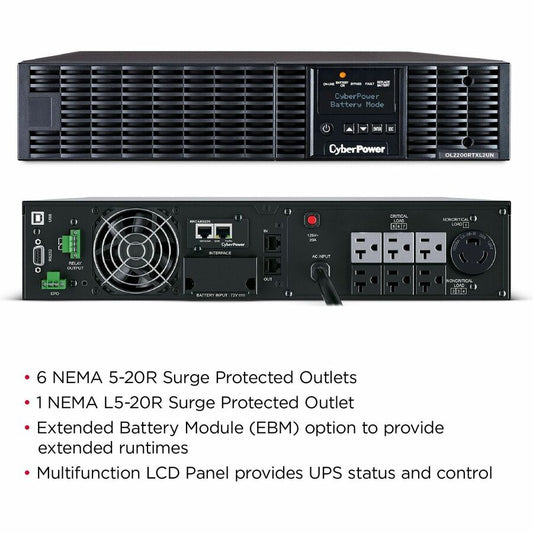 Systèmes d'onduleurs CyberPower OL2200RTXL2UN Smart App en ligne - Capacité : 2200 VA / 1800 W OL2200RTXL2UN
