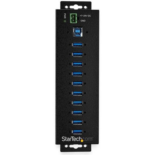 StarTech.com Hub USB 10 ports avec adaptateur secteur - Hub de données USB 3.0 industriel en métal - Montage sur rail DIN, mural et de bureau Hub USB 3.1 Gen 1 5 Gbit/s HB30A10AME