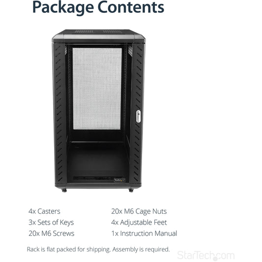 StarTech.com Armoire de serveur 24U 19" à 4 montants, profondeur réglable de 2 à 30" avec roulettes, gestion des câbles, étagère 1U, portes verrouillables et panneaux latéraux RK2433BKM