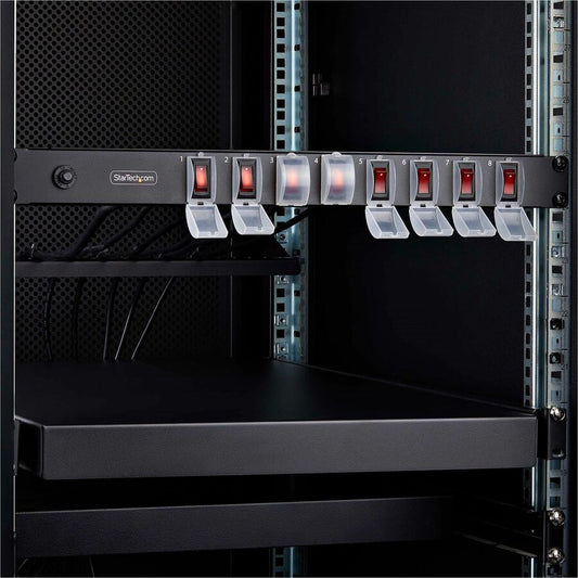 StarTech.com PDU à montage en rack horizontal à 8 prises, multiprise 1U, interrupteurs marche/arrêt, disjoncteur 15 A, cordon de 2,4 m, NEMA 5-15P/R 8NS8-RACK-MOUNT-PDU