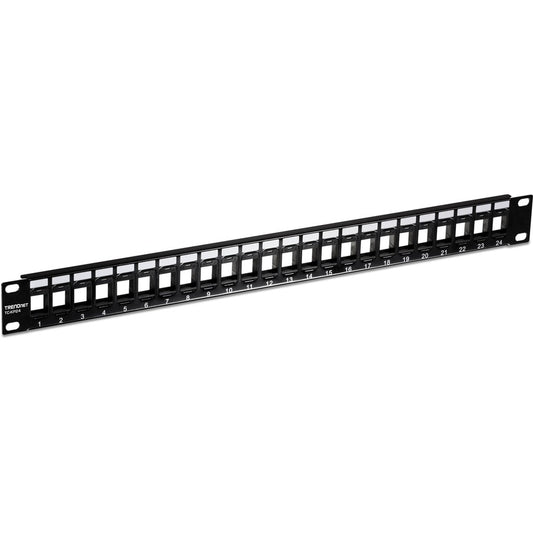 Panneau de brassage Keystone 1U vierge à 24 ports TRENDnet, boîtier de montage en rack métallique 1U 19", recommandé avec les prises Keystone Cat6 TC-K25C6 et TC-K50C6 (vendues séparément), noir, TC-KP24 TC-KP24