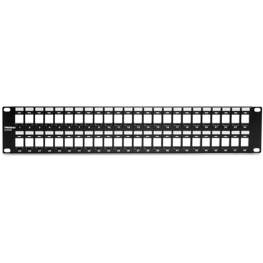 Panneau de raccordement HD Keystone 2U vierge à 48 ports TRENDnet, boîtier de montage en rack 2U 19", panneau de raccordement réseau HD Keystone, recommandé avec les prises Keystone Cat6 TC-K25C6 et TC-K50C6 (vendues séparément), noir, TC-KP48 TC-KP48