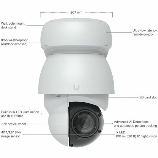 Ubiquiti UVC-AI-PTZ 8 Megapixel Outdoor 4K Network Camera - Color - White UVC-AI-PTZ-W