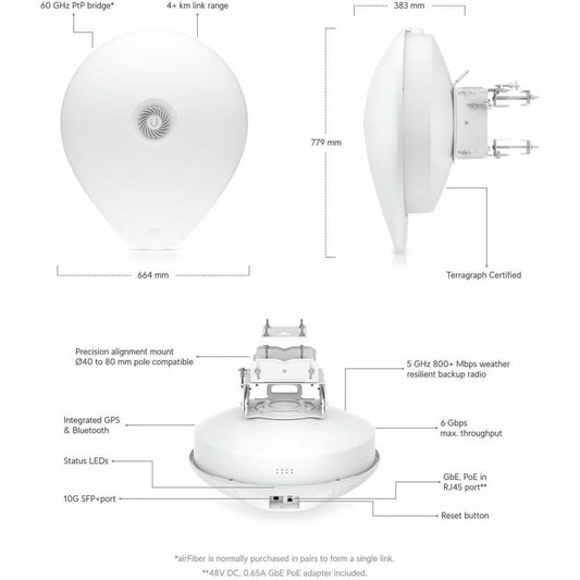 Ubiquiti airFiber 60 XG Single Band 866.60 Mbit/s Wireless Bridge AF60-XG