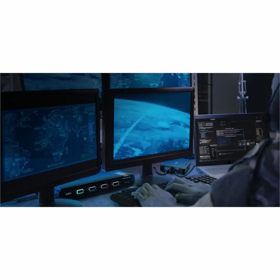 Connectez-vous en toute transparence à des appareils PC ou Chrome et étendez votre poste de travail selon vos spécifications. Avec jusqu'à 100 W de puissance de transfert et des vitesses de transfert de données de 16 Gbit/s, vous pouvez travailler pendant que vous chargez votre ordinateur portable. Profitez d'images nettes et cristallines sur des écrans étendus via des résolutions d'écran allant jusqu'à 4K à 60 Hz. Les câbles hôte et console KVM sécurisés Belkin conformes à la norme TAA offrent une solution pratique pour connecter tous vos ordinateurs et moniteurs à votre commutateur KVM sécurisé.