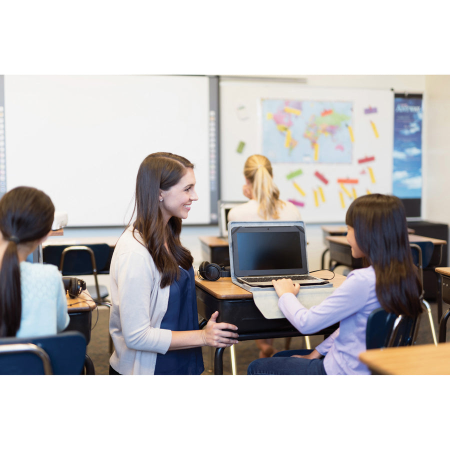- Les sangles de maintien pour les coins de l'écran soulèvent le Chromebook et offrent de la stabilité