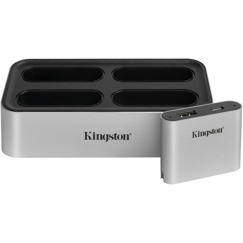 La Workflow Station et les lecteurs de Kingston offrent un système flexible pour transférer des vidéos, des photos et de l'audio à partir de plusieurs sources à la fois1 . Accélérez votre flux de travail de post-production et créez une configuration de déchargement de fichiers adaptée à vos besoins. La station d'accueil Workflow Station est personnalisable afin que vous puissiez utiliser uniquement le miniHub USB, les lecteurs SD ou les lecteurs microSD dont votre tournage a besoin. Que vous soyez sur un tournage multi-caméras 4K/8K avec des enregistreurs audio portables pour chaque hôte, ou que vous filmiez un B-Roll avec des drones et des GoPros, vous pouvez connecter jusqu'à quatre lecteurs à la station d'accueil simultanément et transférer des séquences rapidement. La Workflow Station et les lecteurs prennent en charge les vitesses USB 3.2 qui vous permettent d'accéder à votre processus de post-production plus rapidement que jamais. Pour plus de flexibilité, les lecteurs de cartes peuvent être utilisés en déplacement. Lorsque vous devez filmer sur place, déposez simplement le hub ou les lecteurs dont vous avez besoin dans votre sac et connectez-les à votre ordinateur portable à l'aide du câble USB-C® inclus.