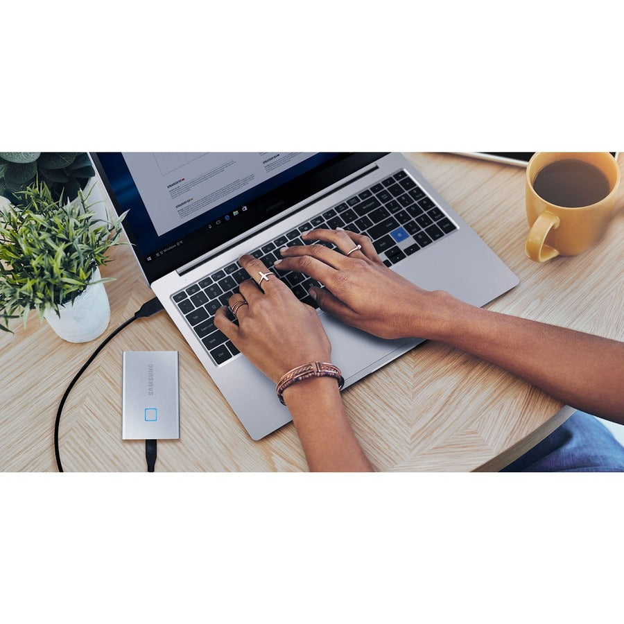 Les options de sécurité intégrées du T7 Touch utilisent le cryptage AES 256 bits et vous offrent la possibilité de déverrouiller d'une simple pression du doigt ou avec un mot de passe.
