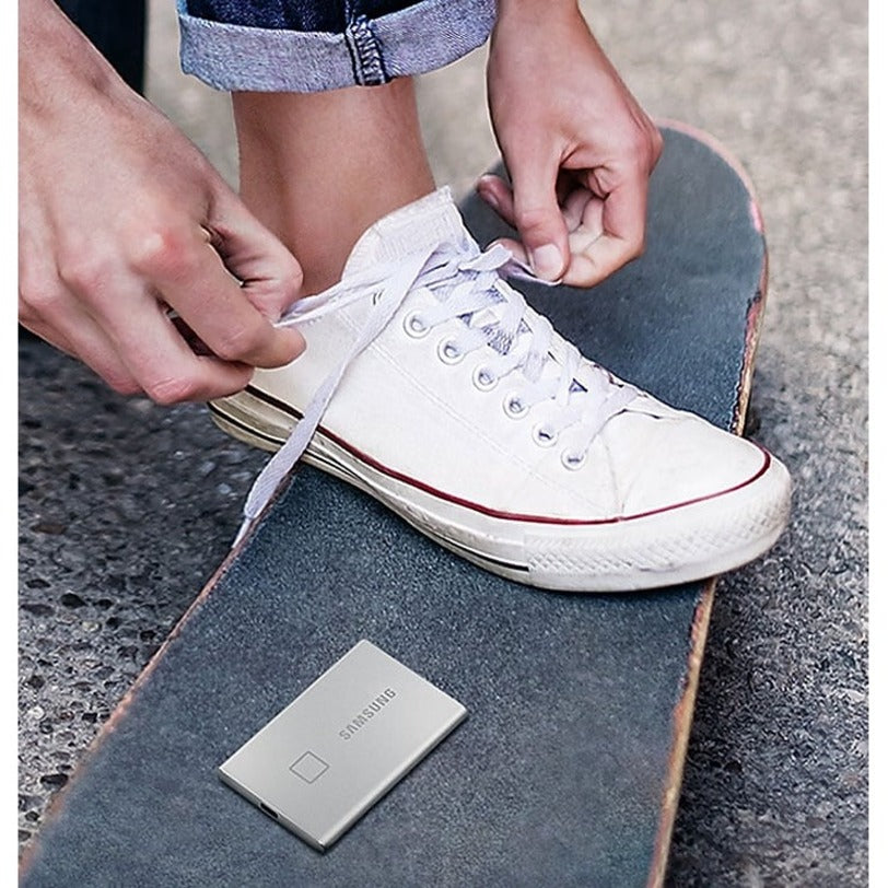 De format de poche et fin, le boîtier léger est livré en standard sur le T7 Touch. De la taille d'une carte de crédit et pesant 58 grammes, la construction monocoque en aluminium solide tient confortablement dans la paume de votre main.