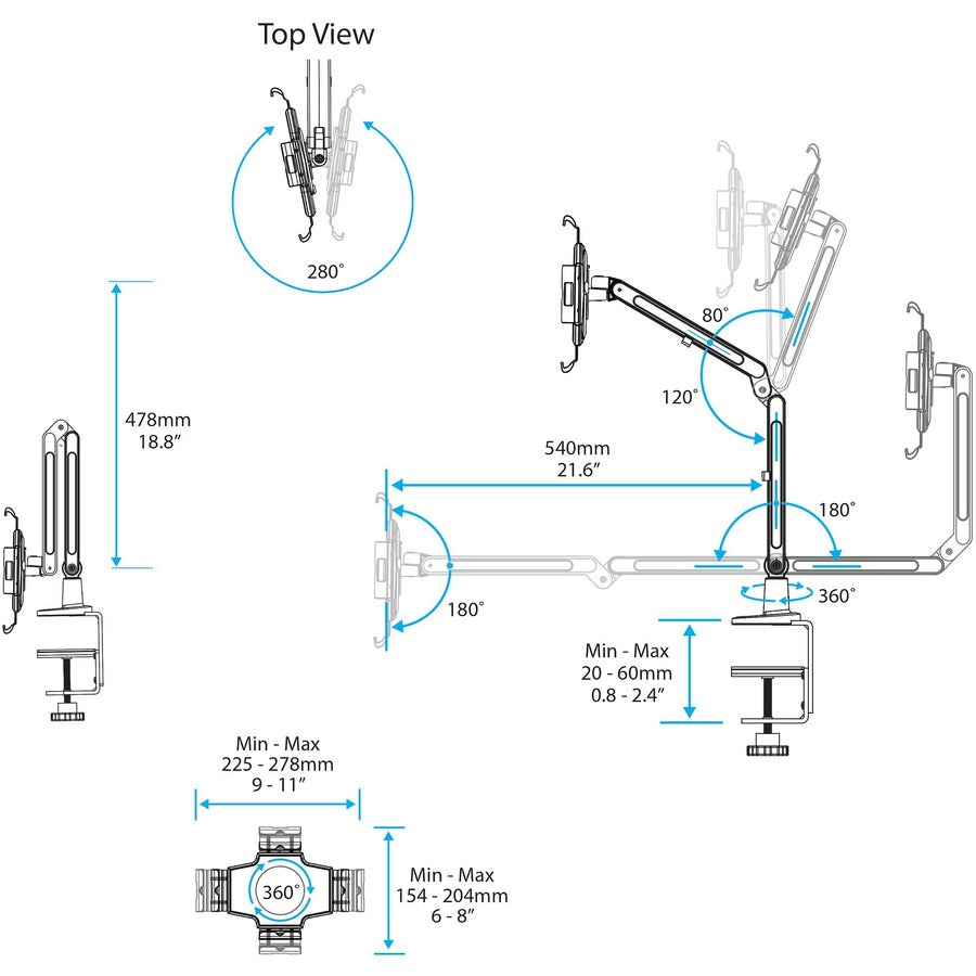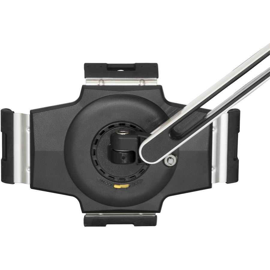 Vous pouvez facilement fixer ce support de tablette à votre surface de travail en le fixant sur votre bureau ou votre plan de travail. De plus, le bras intégré gère discrètement votre câble de chargement pour un espace de travail propre et professionnel, qui vous permet de charger votre tablette pendant qu'elle est montée. Le support de tablette est doté d'un mécanisme à griffes qui vous permet de retirer et de remonter facilement votre tablette.
