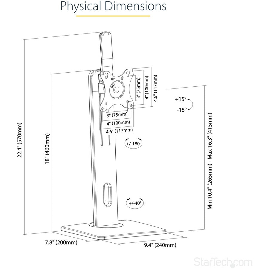 - SUPPORT D'ÉCRAN SIMPLE AUTONOME : Ce support d'écran prend en charge un écran compatible VESA jusqu'à 32" (15,4 lb / 7 kg) ; VESA 75x75/100x100 mm ; Base rotative solide (+/-40°) ; La finition noire semi-brillante avec revêtement en poudre offre un look professionnel et moderne