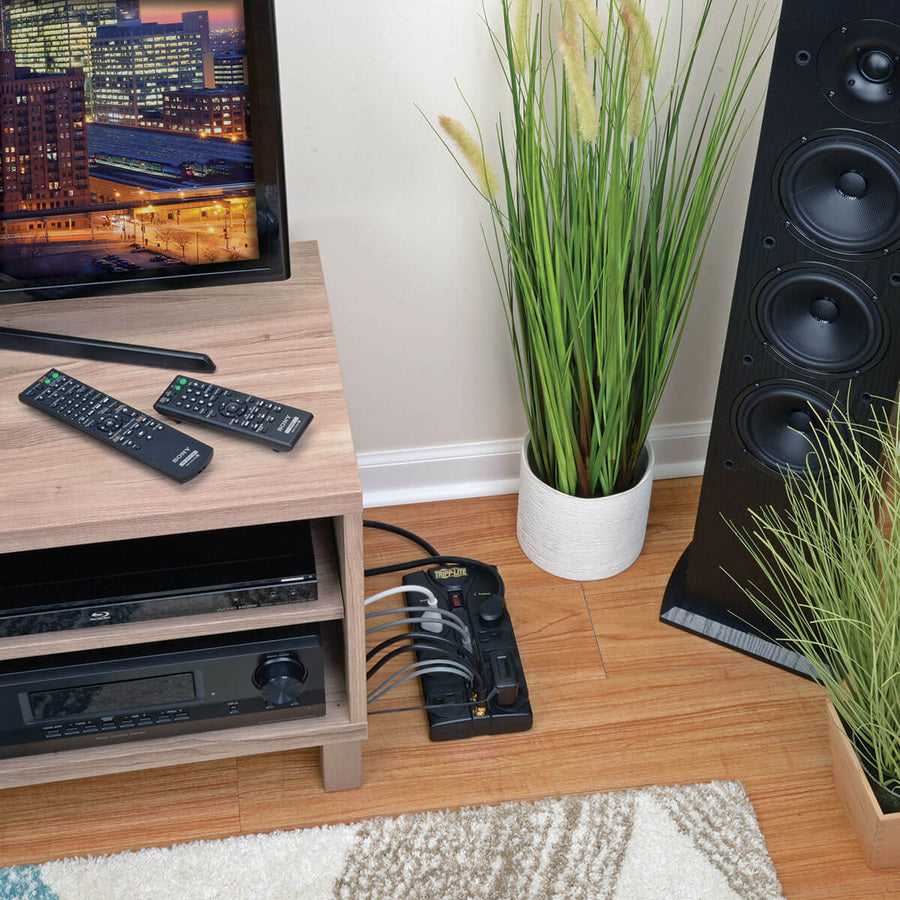 Parasurtenseur avec huit prises pouvant accueillir trois transformateurs volumineux sans bloquer les prises restantes. La suppression des surtensions de 3240 joules gère les surtensions fortes. Les prises coaxiales RJ11, RJ45 et Type F intégrées empêchent les surtensions d'endommager votre équipement modem/fax/100Bt/câble/satellite. Les prises coaxiales offrent une qualité de haut débit numérique et peuvent gérer une bande passante de 2,2 GHz. Les LED de diagnostic indiquent la présence de protection et de terre. Une alarme sonore avertit l'utilisateur lorsque l'appareil est endommagé et doit être remplacé. Le projecteur de surtension comprend également un filtrage du bruit de ligne EMI/RFI ; un cordon de 10' avec une prise à angle droit peu encombrante ; un cordon téléphonique de 6' ; des supports de trou de serrure pour le montage mural et un interrupteur d'alimentation éclairé.