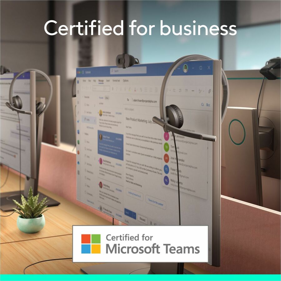 Enjoy clear audio on Teams calls with Logitech H570e, certified for Microsoft Teams. This entry-level headset delivers better sound with easy controls for enhanced communication and productivity. It features enterprise-quality audio with dual noise-canceling mics and a 30 mm driver. Convenient inline controls and a dedicated Teams button make it easy to manage calls, adjust volume, and mute or unmute. Designed for sustainability and comfort, H570e offers a lightweight design with a minimum of 54% post-consumer recycled plastic(1) in the plastic parts, padded headband, and replaceable earpads. It's perfect for long online calls and meetings.