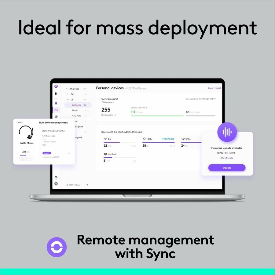 - Remote Management: Logitech Sync offers IT admins a secure and scalable approach to remotely manage and update each work headset; requires Logi Tune (2) downloaded on individual laptops