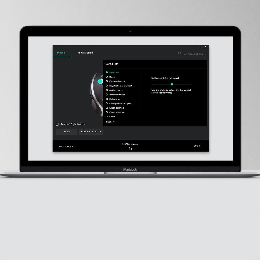 M500s takes your work to the next level with hyper-fast scrolling and seven configurable shortcut buttons. The full-sized, perfectly sculpted design combines comfort and precision for a smarter, faster work experience. Now with adjustable DPI and Logitech OPTIONS software.