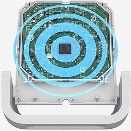Enjoy safe, silent charging. POWERED utilizes internal heat sensors to intelligently manage temperature and prevent overheating. If temperatures start to rise too high, a cool-down process kicks in automatically, eliminating the need for noisy fans.