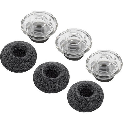 Replacement eartip kits for the Plantronics Voyager Legend headset are available in three different sizes: small, medium, and large. Each eartip kit contains 3 silicone eartips of the same size (small, medium, or large). The small and medium sizes come with optional foam covers.