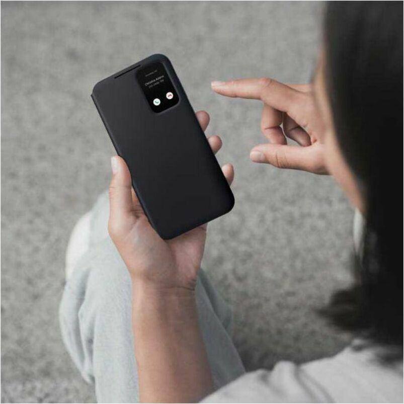 The display window lets you peek at notifications, calls and more without opening the case. The case is consciously crafted to incorporate recycled materials and bio-based content
