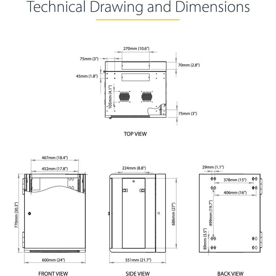 This 15U server or network rack cabinet lets you mount your EIA-310 compliant equipment to the wall, in a secure enclosure that has a hinged rear door for easy access to your equipment. The enclosure features adjustable mounting depth from 2.4 to 16.1 in. to provide a robust storage solution for your rack-mount equipment.